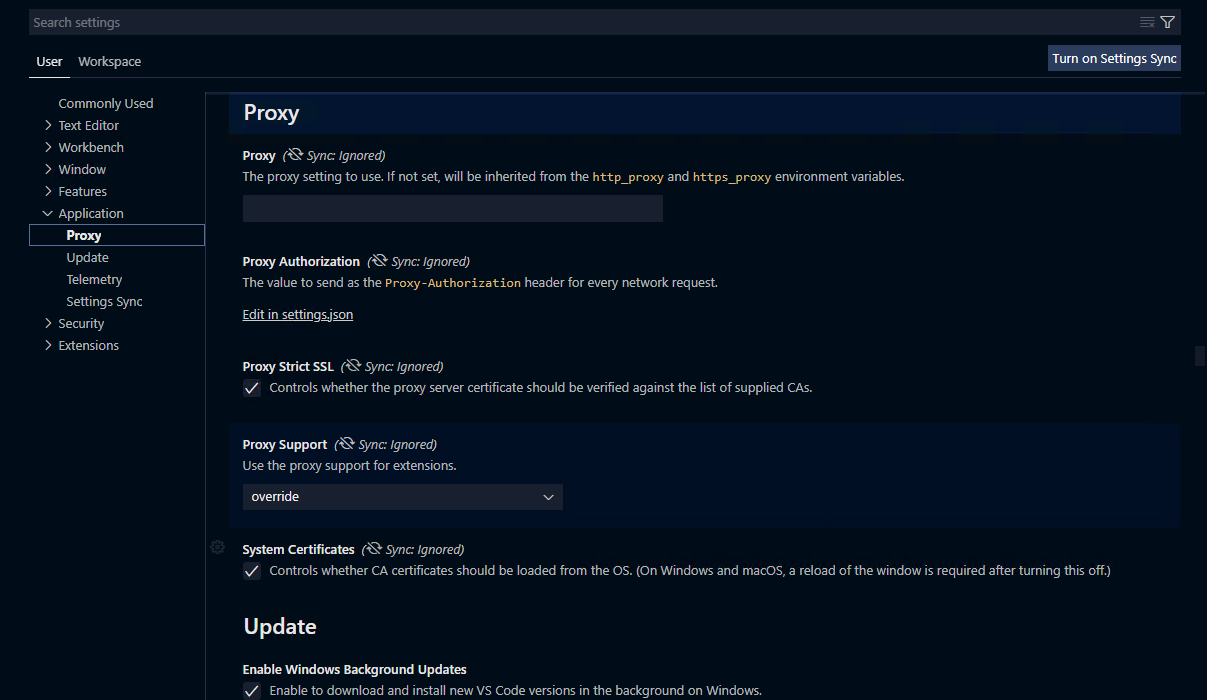 单击菜单栏中的“文件-首选项-设置”,然后展开“用户设置”中的“应用程序”,选择“代理”并输入代理地址和端口。
