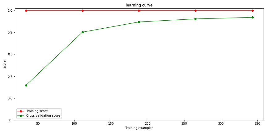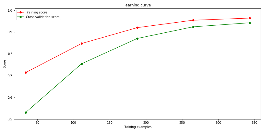 学习曲线是找出哪些模型从增加训练数据中受益的工具。换句话说,它们表示具有更多数据集的模型是否会提供更好的结果。