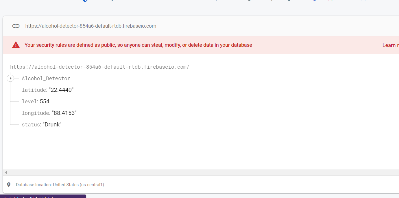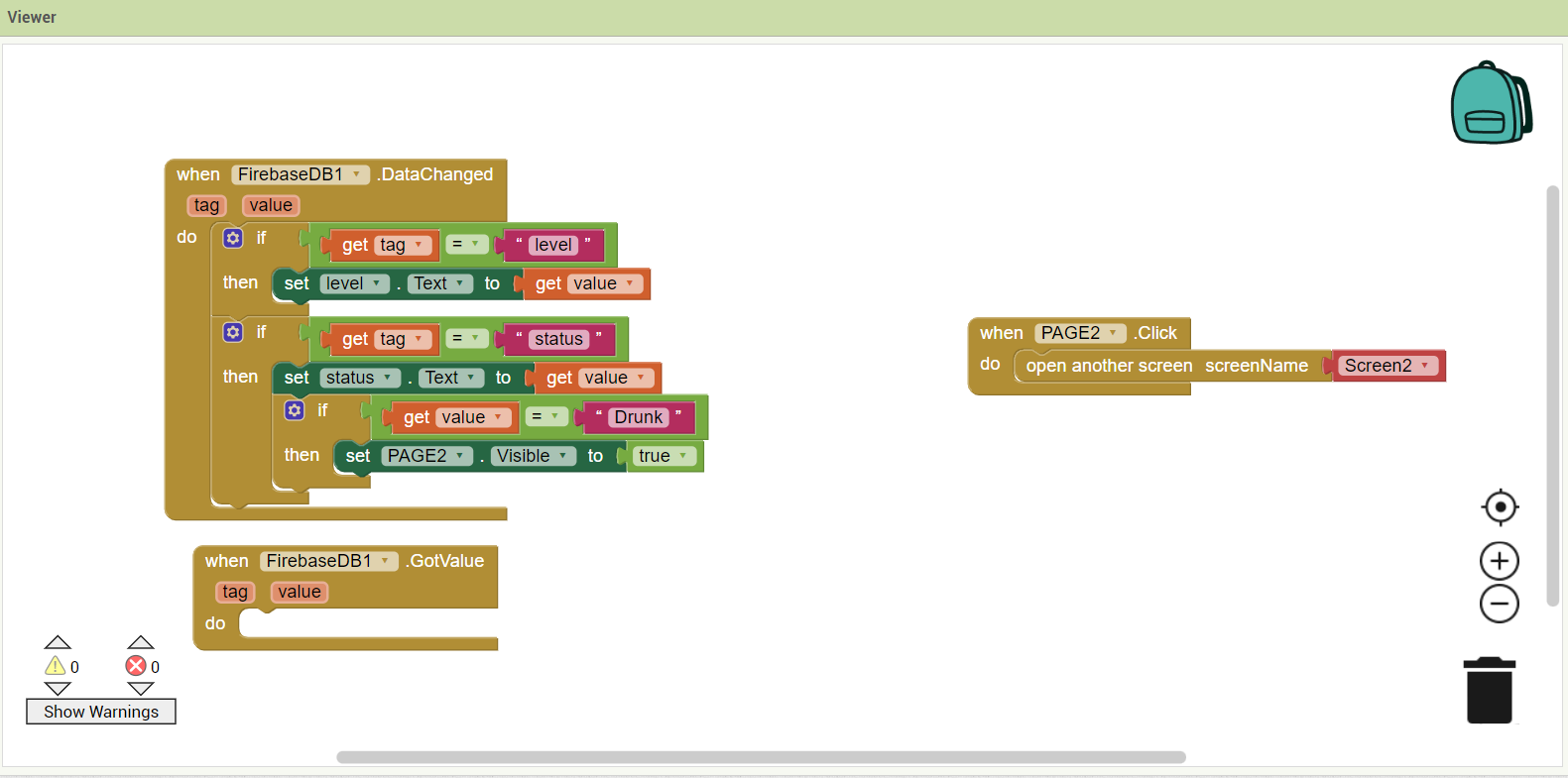 我正在为我的大学做这个酒精检测项目,在那里我创建了一个应用程序,使用麻省理工学院的应用程序inventor来显示酒精水平,司机的状态(醉酒或清醒)和分享位置。