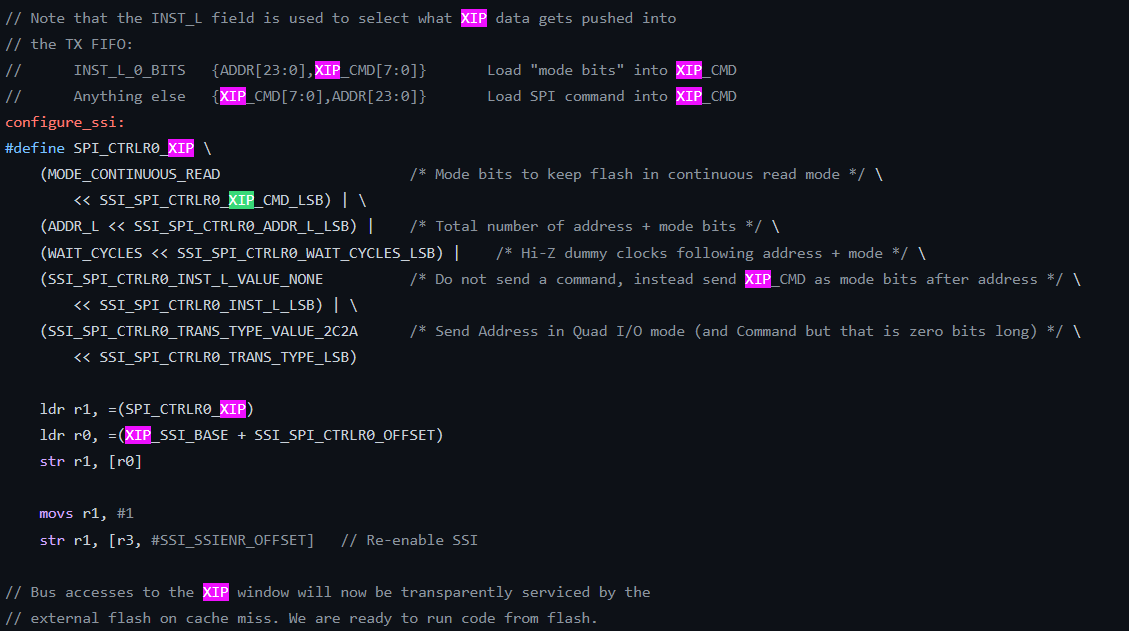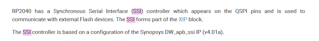 SSI代表同步串行接口,它必须配置为使用flash作为XIP。数据表中对此进行了描述: