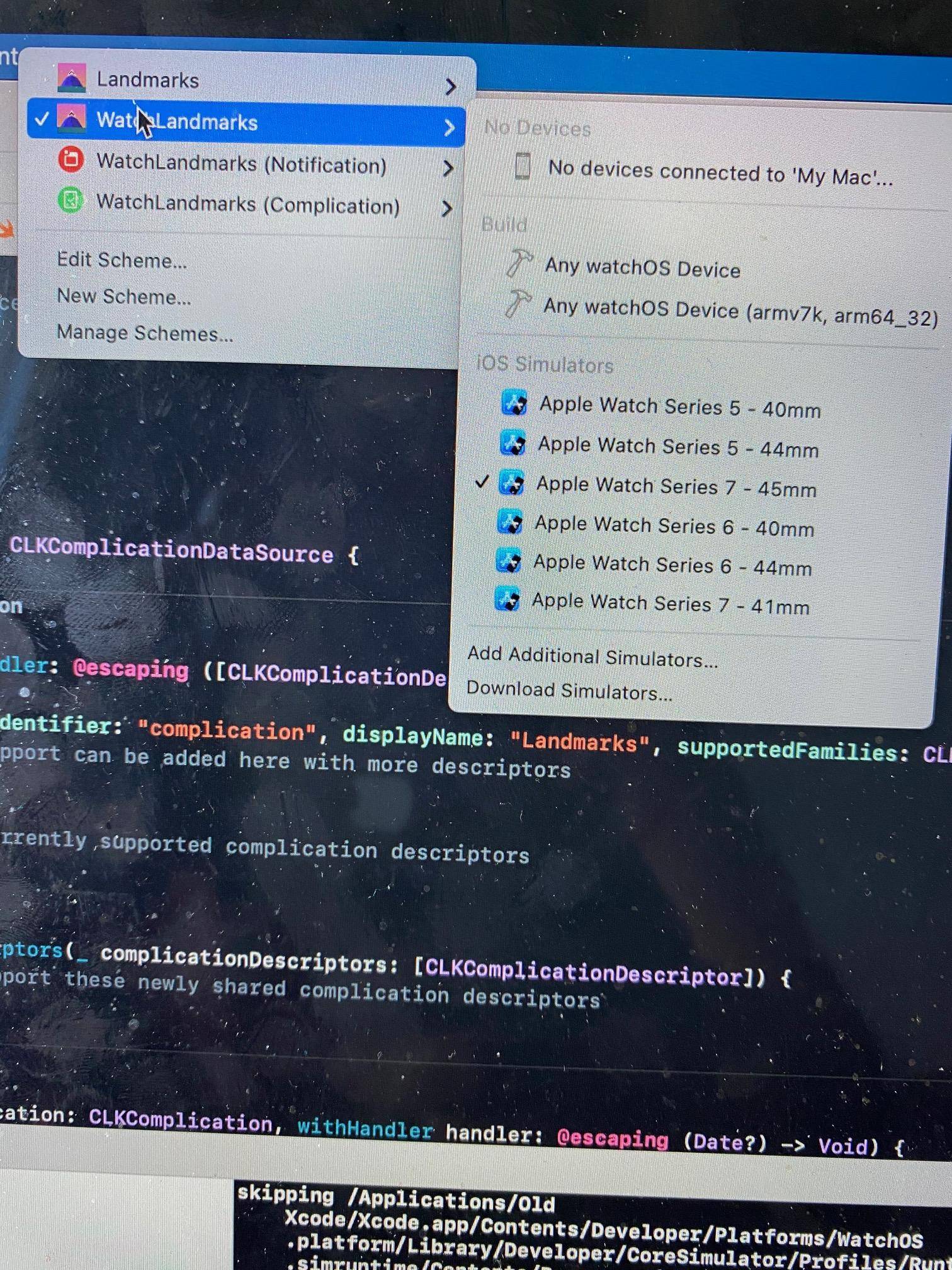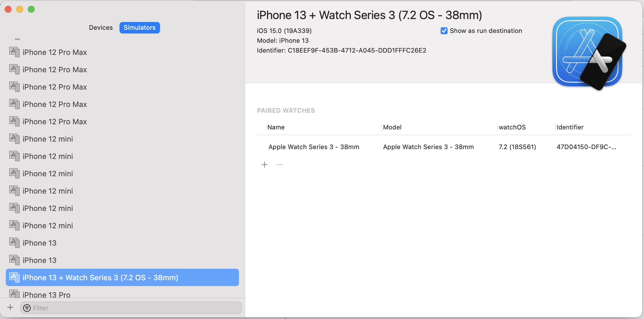 当我使用iOS方案运行应用程序并选择配对模拟器时,我只看到iPhone模拟器即将出现。如果我运行手表目标,我只知道手表模拟器,而不知道iPhone模拟器。我继续不检查“支持运行而没有安装iOS应用程序”的观察目标->通用->部署目标,甚至在那之后,我只是看到手表模拟器被显示。我想看到iPhone和并排观看。