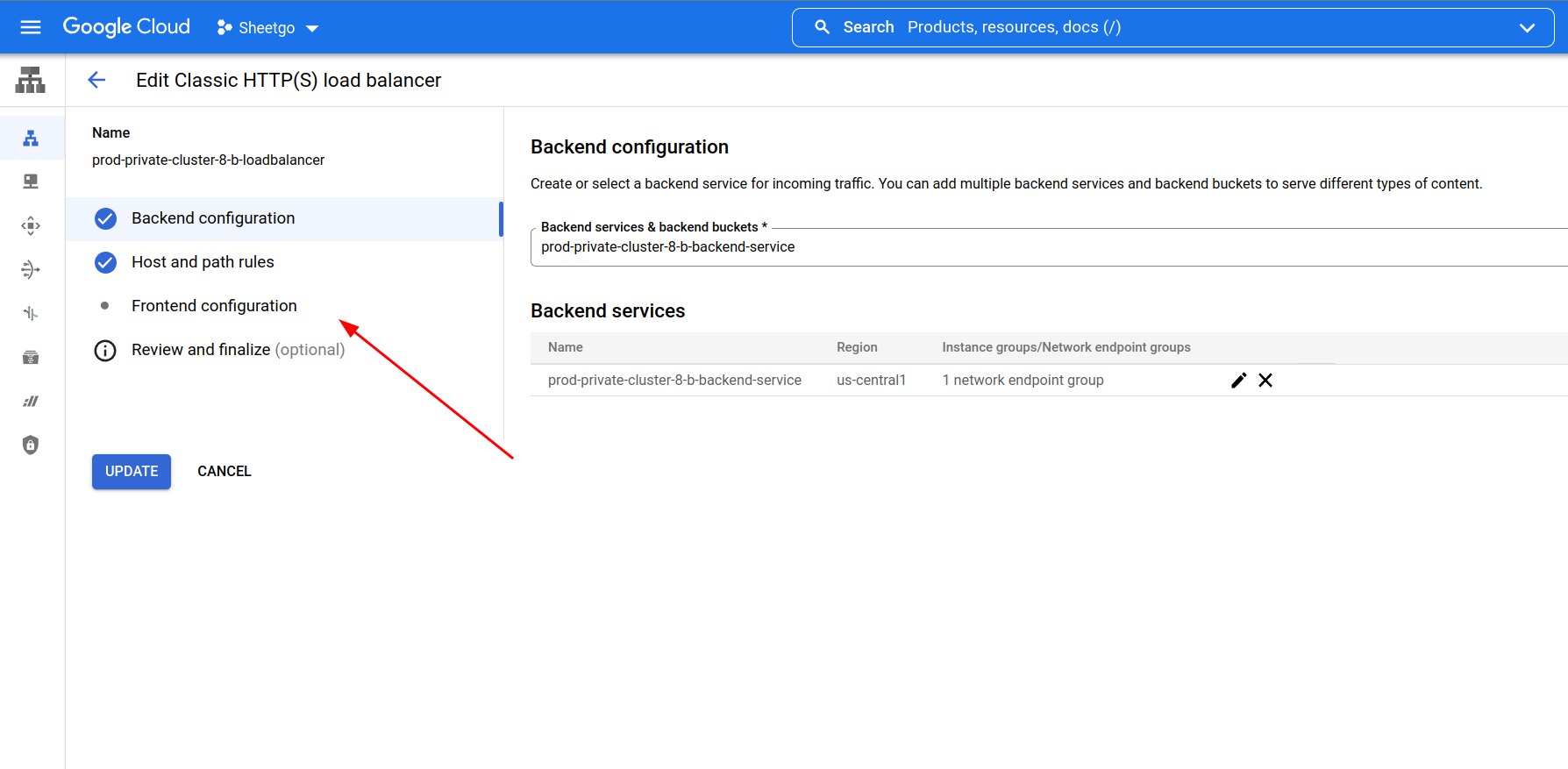 前端,请在控制台上输入负载平衡器,然后单击"Edit".前端配置选项卡将是不完整的。去吧,,