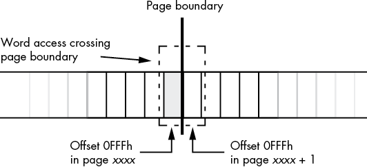 --在一种情况下,您需要担心内存中的MMU页面组织。有时,在内存中数据结构结束后访问(读取)数据是很方便的。但是,如果该数据结构与MMU页的结尾对齐,那么访问内存中的下一个页面可能会有问题。内存中的某些页面是不可访问的;MMU不允许在该页面上进行读取、写入或执行。尝试这样做将产生x86-64通用保护(分段)错误,并中止程序的正常执行。如果您有跨越页边界的数据访问权限,而内存中的下一页无法访问,则会使您的程序崩溃。例如,考虑在MMU页面的末尾访问一个字节对象,如图3-2所示。