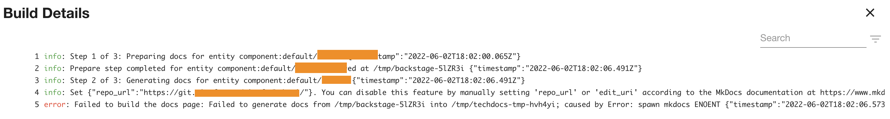 错误:无法构建docs页面:未能从/tmp/backment-5lZR3i生成文档到/tmp/ docs -hvh4yi;由错误引发:生成mkdocs ENOENT {“时间戳”:“2022-06-02T18:02:06.573Z”}