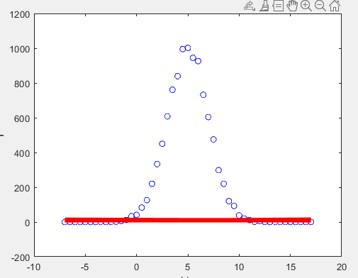 scatter(bin,f); hold on;