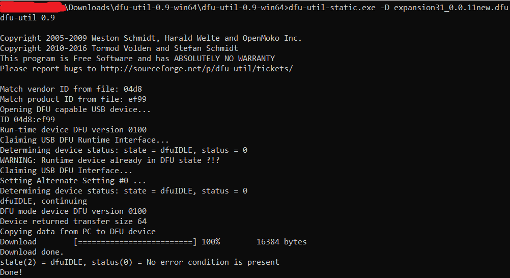 由于我能够连接到LoRa,我认为问题一定是在LTE调制解调器固件,但只是为了确保我想更新扩展板3.1固件以防万一。在本教程之后,我成功地更新了Windows固件并获得了以下输出: