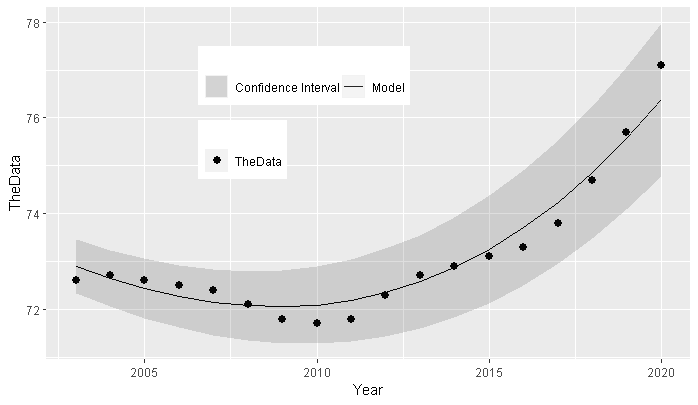 MyDF <- data.frame(Year, TheData, Lower, Upper, Model) 这是我的密码:
