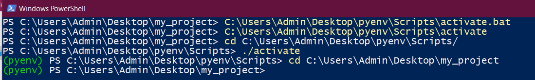 call C:\Users\Admin\Desktop\pyenv\Scripts\activate.bat
