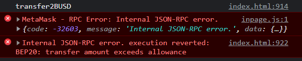 我无法运行它,因为我的acc上没有任何BUSD或BNB,但据我所见,执行是成功的,因为我收到了一个错误,告诉我转移金额超过了备抵:)