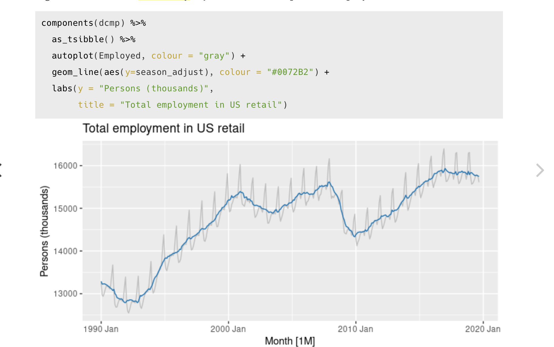 我正在使用tsibble,并遵循Hyndman和Athanasopoulos编写的教科书。这是一本很好的教科书,但也超出了我的体重。https://otexts.com/fpp3/