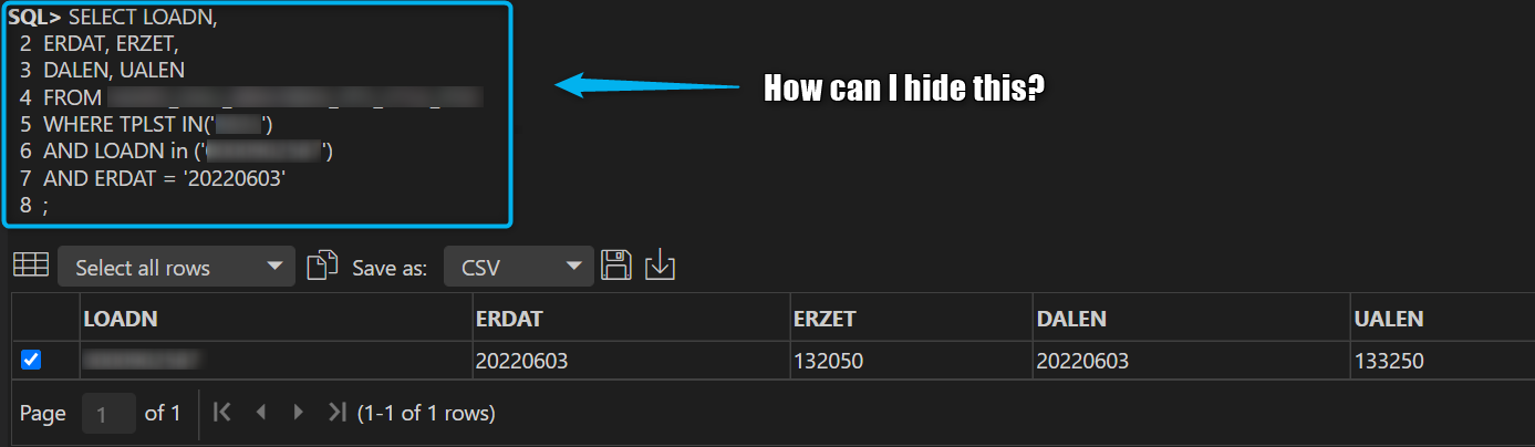 如何在结果选项卡中隐藏SQL语句?我不想在我的数据行中看到它。