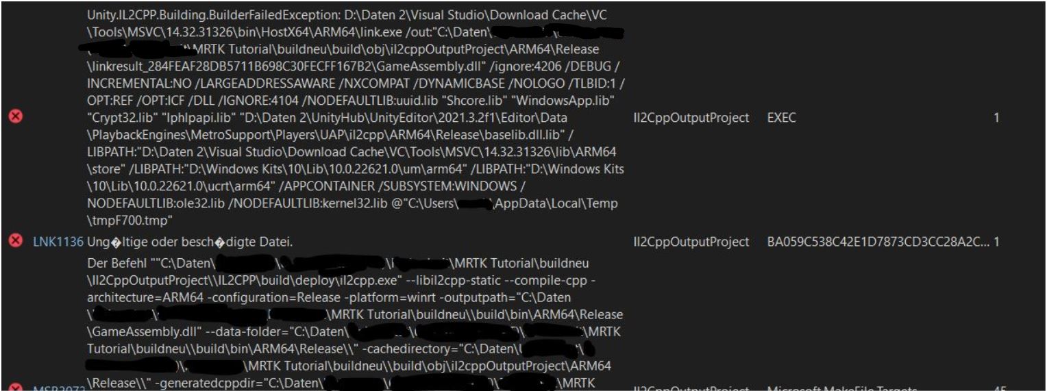 LNK1136错误是由损坏或无效的文件造成的。因为要将一个统一项目部署到HoloLens,您需要首先构建一个统一项目。如果清除与生成,然后重建不起作用,请尝试删除统一生成,然后重建。