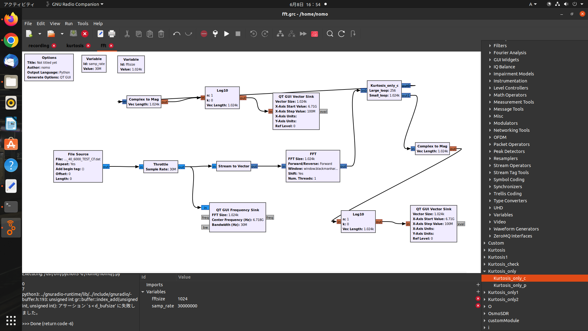 但是,当我在GRC中运行流图时,它会产生以下错误消息。