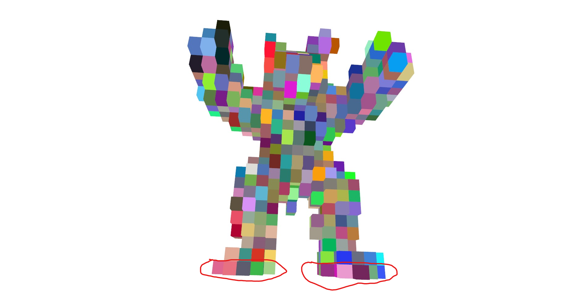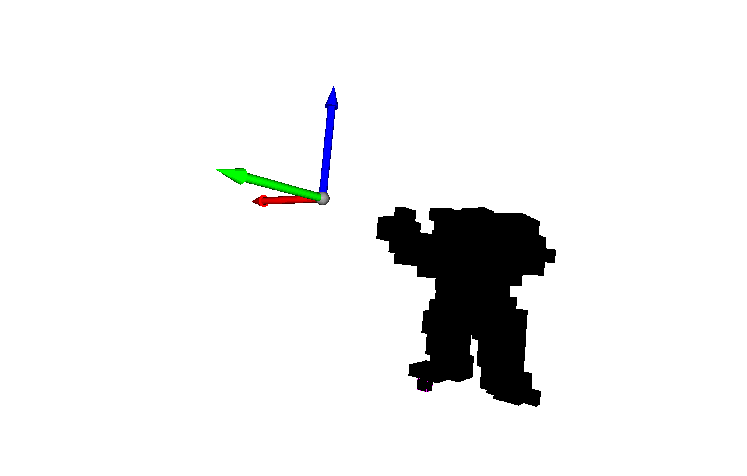 o3d.visualization.draw_geometries([voxel_grid, *bounding_box, axes])这是如何运行这段代码上的墨迹网格。请注意,我添加了坐标框来确定方向。蓝色箭头指向+z。z值最低的体素有紫色的边。