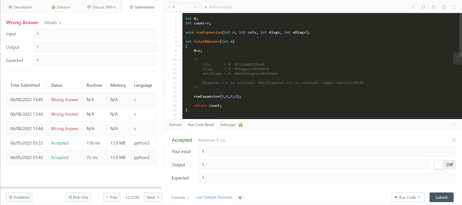 下面是c中相同的代码(这是在在线评审上提交的)。