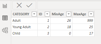 首先,您应该将类别的最小和最大年龄放到AGE_CATEGORY表中。然后,该表如下所示: