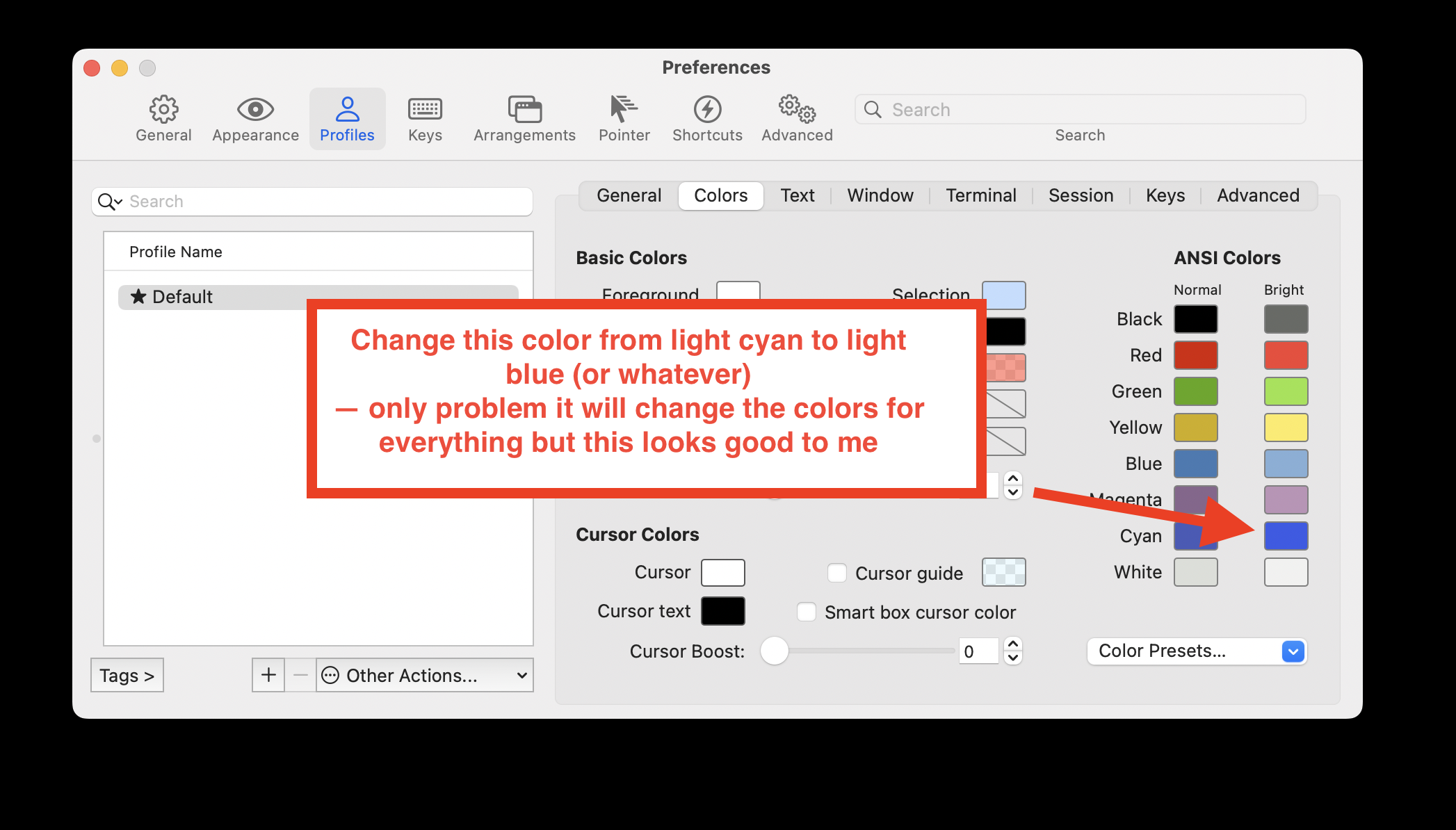 通过改变iTerm2.中浅蓝色来固定