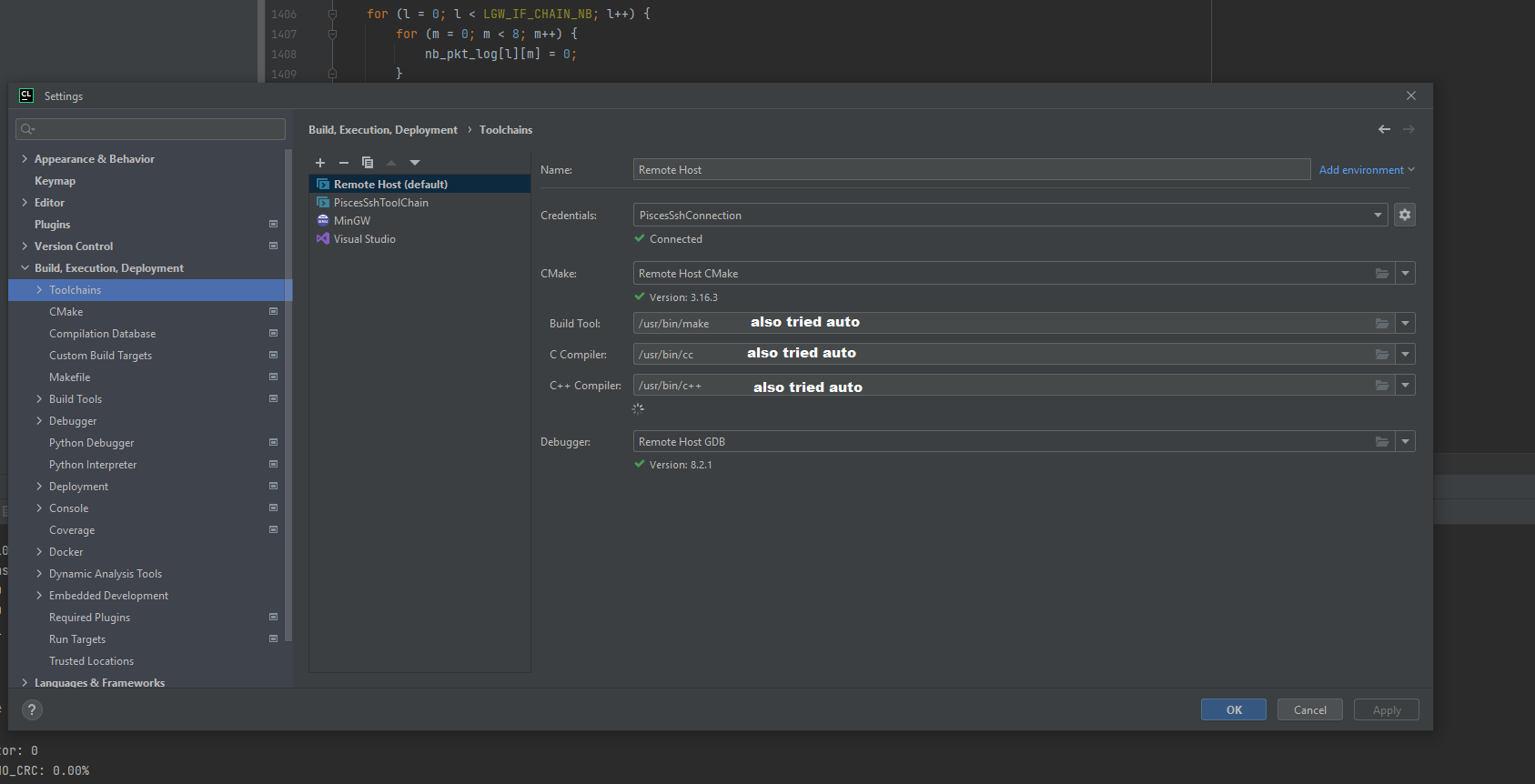 通常情况下,它是在remote device上工作,没有问题。我将app下载到我的计算机,并在CLion中成功地构建了该项目。在我尝试了很多事情之后,几乎每一个远程调试和设置的组合。我知道我错过了点,我需要帮助。如果你能帮我,你就能救我的命