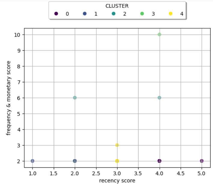 ax.legend(*sc.legend_elements(), title="CLUSTER",loc='lower center',