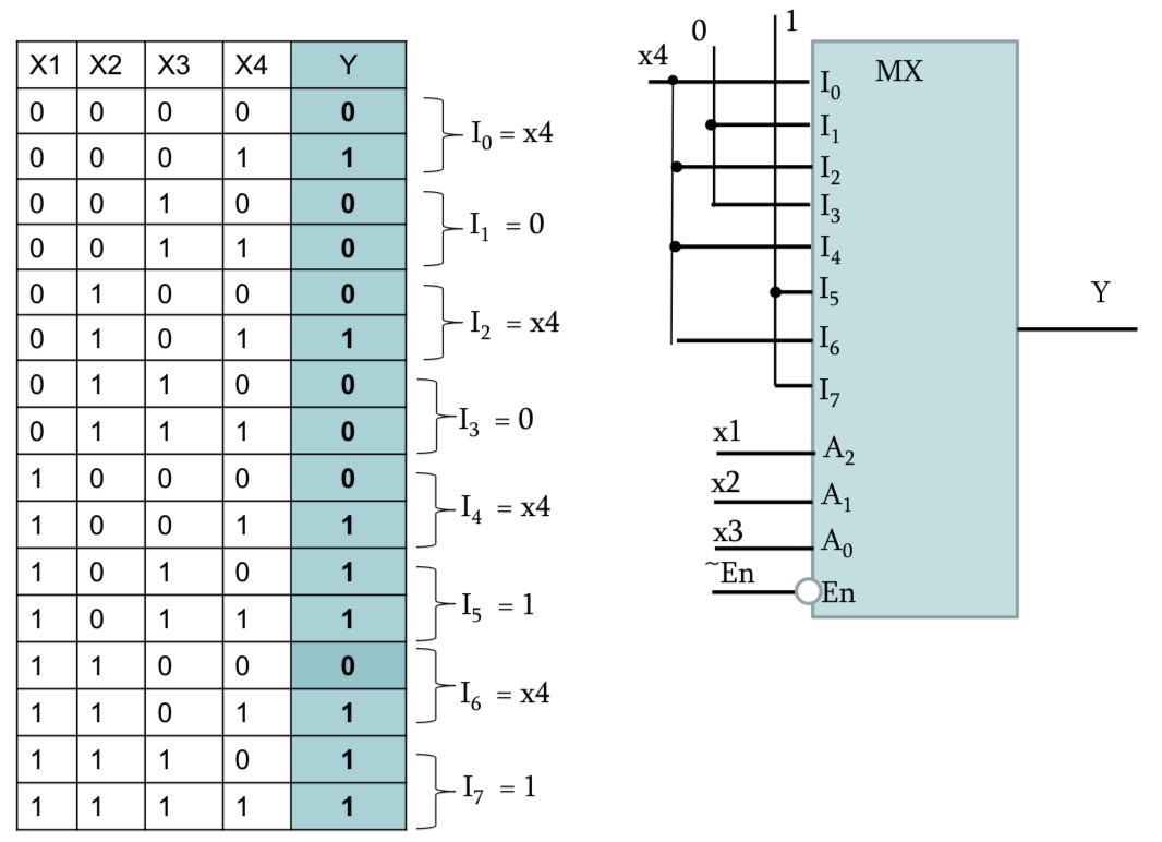 如何将四个变量的真值表转换成一个4:1的复用器