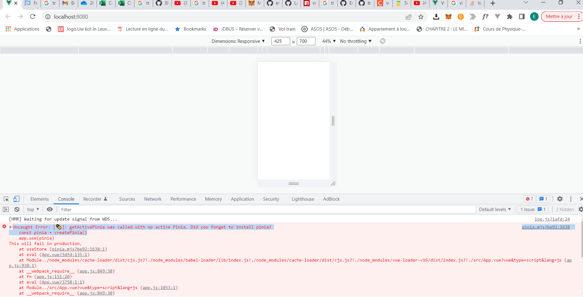 我在使用pinia有问题,以前我在我的项目中使用了vuex,但是我想迁移到pinia来处理我的商店。所以我想,我把皮尼亚装好了。这样我就可以在没有问题的情况下运行我的应用程序的服务器。但是,当我打开页面(PS: vue dev工具不再被检测到)时,我得到了以下信息: