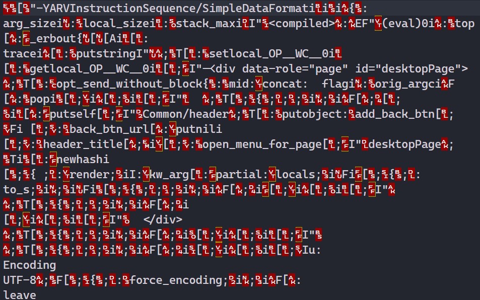 我用菱形车开发了一个应用程序,它是一个跨平台的本地移动应用程序,使用了web技术: HTML、CSS、JavaScript和Ruby,但不幸的是,现在我没有源代码,因为我已经丢失了它,但是我有当时构建的apk。有几个读数显示,可以通过reversing the apk恢复它,就像我所做的那样,但是在assets\apps\app中,我得到了YARV-字节码,它肯定需要恢复到红宝石源。我看到了一些像倒转这样的工具,它们被宣传为YARV to Ruby,但对我不起作用。在给出YARV字节码的例子中,出现了与我从倒转中提取的apk中找到的字节码不同的地方。我的地雷如下所示: