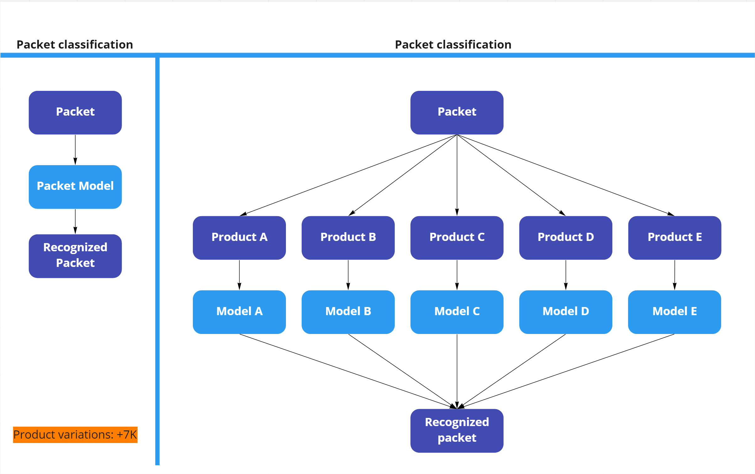 然后,将数据包分割成单独的页面,并训练一个机器学习模型,使其能够对“它是什么产品”进行分类。