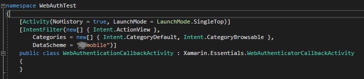 当使用方法时,我得到一个异常:等待WebAuthenticator.AunthenticateAsync(新Uri(url),新Uri(“myapp://”));