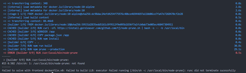 RUN node-prune /usr/src/app/node_moduleshttps://stackoverflow.com/questions/72625507