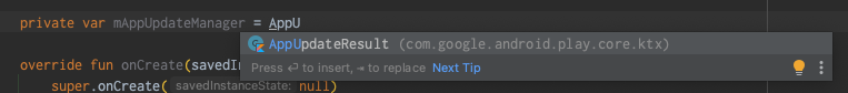 }上面的例子是最终允许程序构建的例子,但是当我使用这个库时,很明显它的许多元素没有被正确导入。当我尝试实例化AppUpdateManager时,它就丢失了,而AppUpdateResult似乎是唯一可用的。