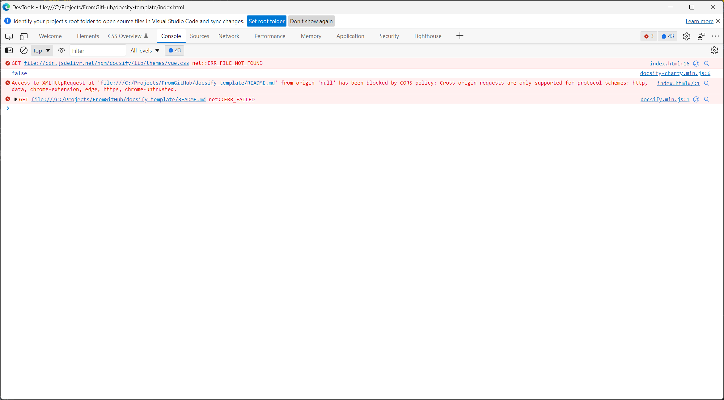 我面临的问题是当我在本地机器上打开index.html时,浏览器无法读取.md文件。
