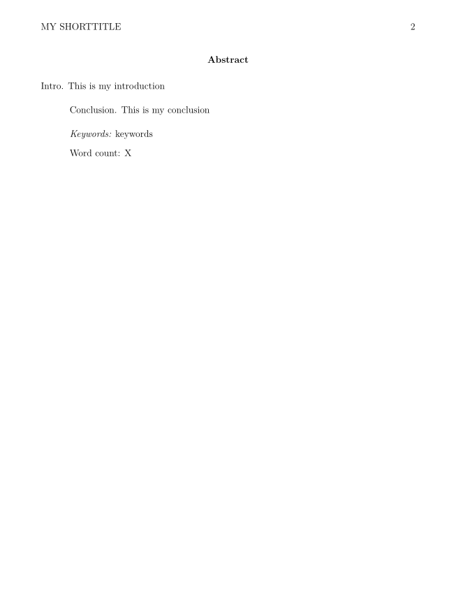 在由papaja生成的文档中,为什么抽象的第一段没有正确缩进--参见“Intro”之间的偏移量。和“结论”,如果我正确阅读YAML的话,两者应该是一样的缩进。
