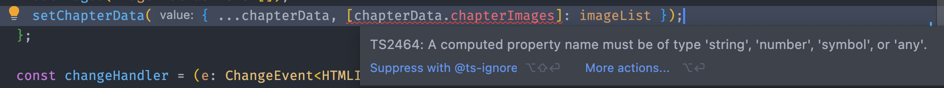 有一个打字稿错误。那么,如何用key chapterData.chapterImages来更改setState的状态?