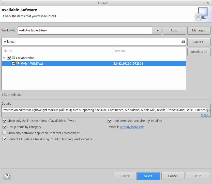 该编辑器来自Mylyn Wikitext项目。Mylyn被从2022-06同时发布的版本和大部分软件包中删除。您可能可以从http://download.eclipse.org/mylyn/releases/latest安装它,但ymmv。