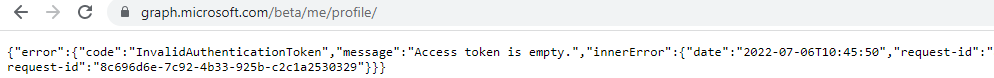 当您使用这些API时,您需要有效的权限来访问配置文件信息。示例:https://graph.microsoft.com/beta/me/profile/