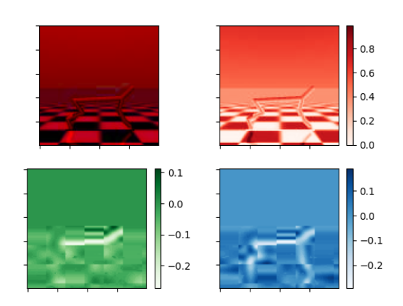 return torch.stack([y, db, dr], -3)我遵循了科尼亚增强库的代码,即RGB到YCbCr来实现RGB到YDbDr。我做错什么了?为什么Db和Dr看起来这么像像素?输入图像为100 x 100。