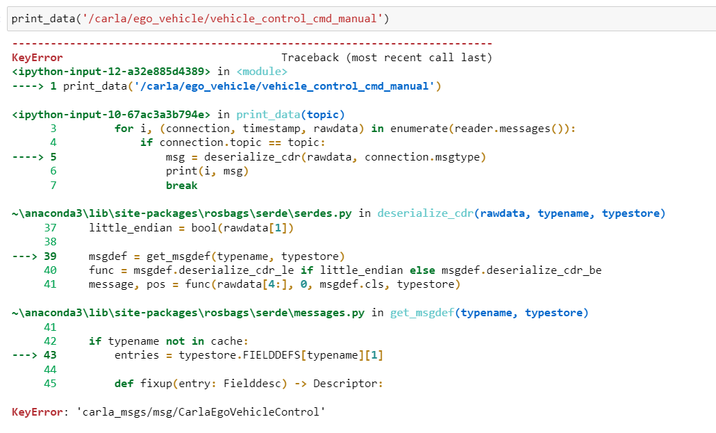 除了主题/carla/ego_vehicle/vehicle_control_cmd_manual之外,一切都运行得很好,该主题提供了如下错误