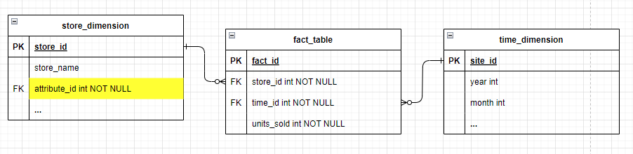 我开始学习数据仓库,并且遇到了一个我无法理解的场景。我试图勾勒出一个数据仓库,以跟踪不同商店的每月销售情况。如果存储区的源OLTP数据库在存储的属性和存储之间有多到多的关系,我将如何在数据仓库中表示存储维度?