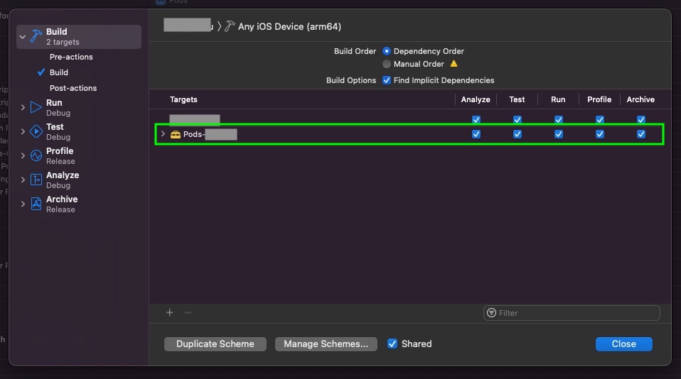 不知何故,我的pods框架在我的构建方案…中作为目标结束了。我不知道这是什么时候发生的,但这并不是故意的,而且移除它解决了这个问题。