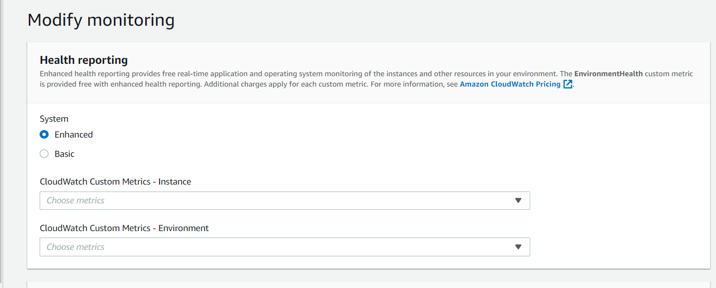 我在Apache服务器上使用Amazon 2配置了我的环境。由于4xx错误,我的实例经常从OK转到严重。我试图在我的环境中启用“忽略应用程序4xx”,但是我在健康监控页面中没有找到下面的选项屏幕。