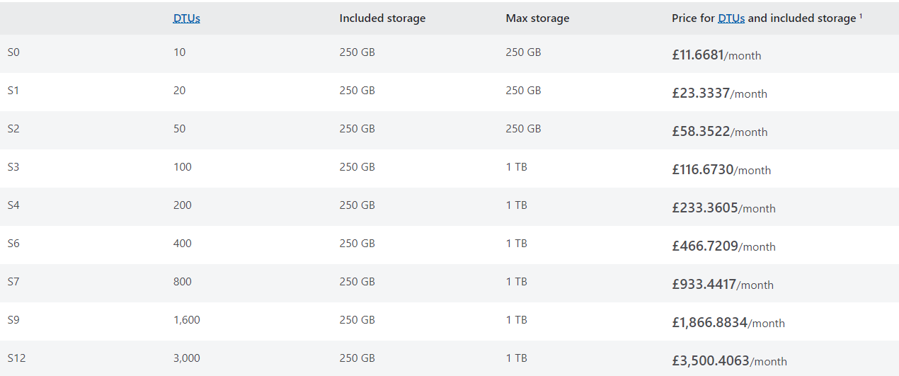 我的VPS我目前支付36 is每月,这是一个固定的付款。然而,在Azure上使用定价计算器,我可以看到,使用一个标准层,它将花费大约is 14,这是一个巨大的节省。我唯一的问题是我选择了DTU。现在我担心一个月可能会很好,但另一个月的成本可能会飙升。我之所以对迁移犹豫不决,是因为我知道我可以用得更少或更多,而且我仍然要支付固定的费用,所以我可以每月支付GB36。