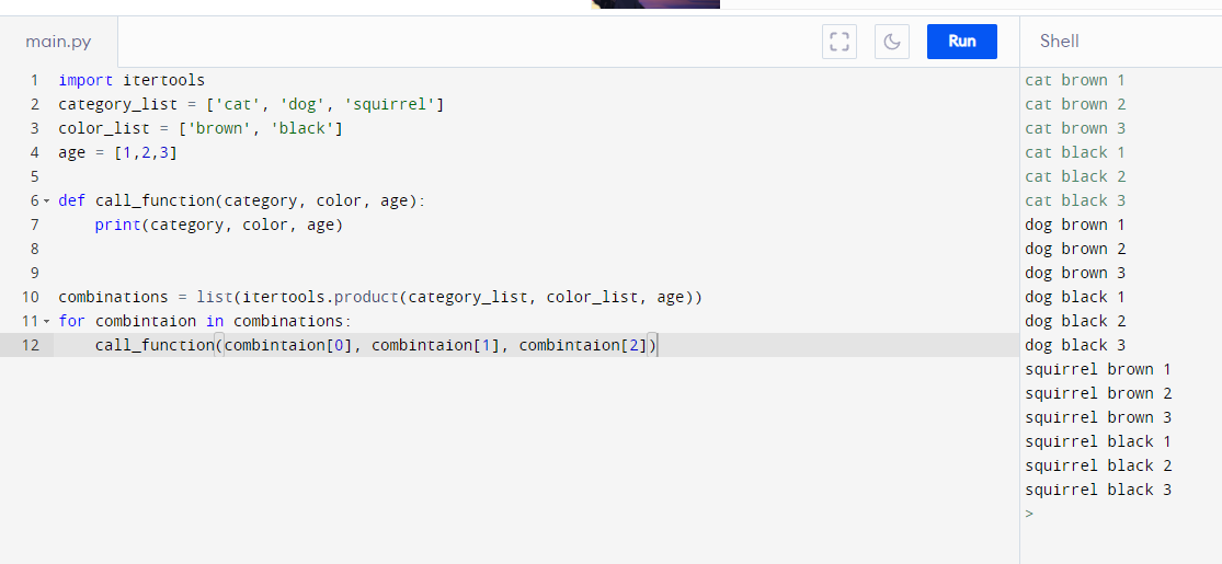 combinations = list(itertools.product(category_list, color_list, age))