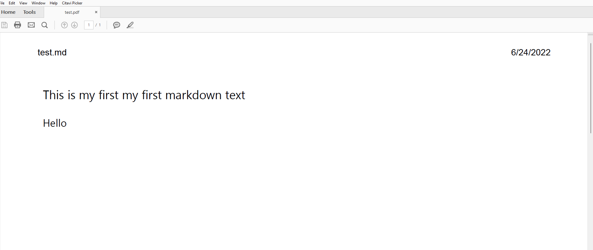 Hello当我使用Ctrl+Shift+P - markdown-pdf: Export (pdf)将文本导出到pdf中时,我得到以下输出: