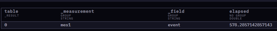 |> mean(column: "elapsed")更新我找到了另一个解决方案。需要使用difference而不是elapsed