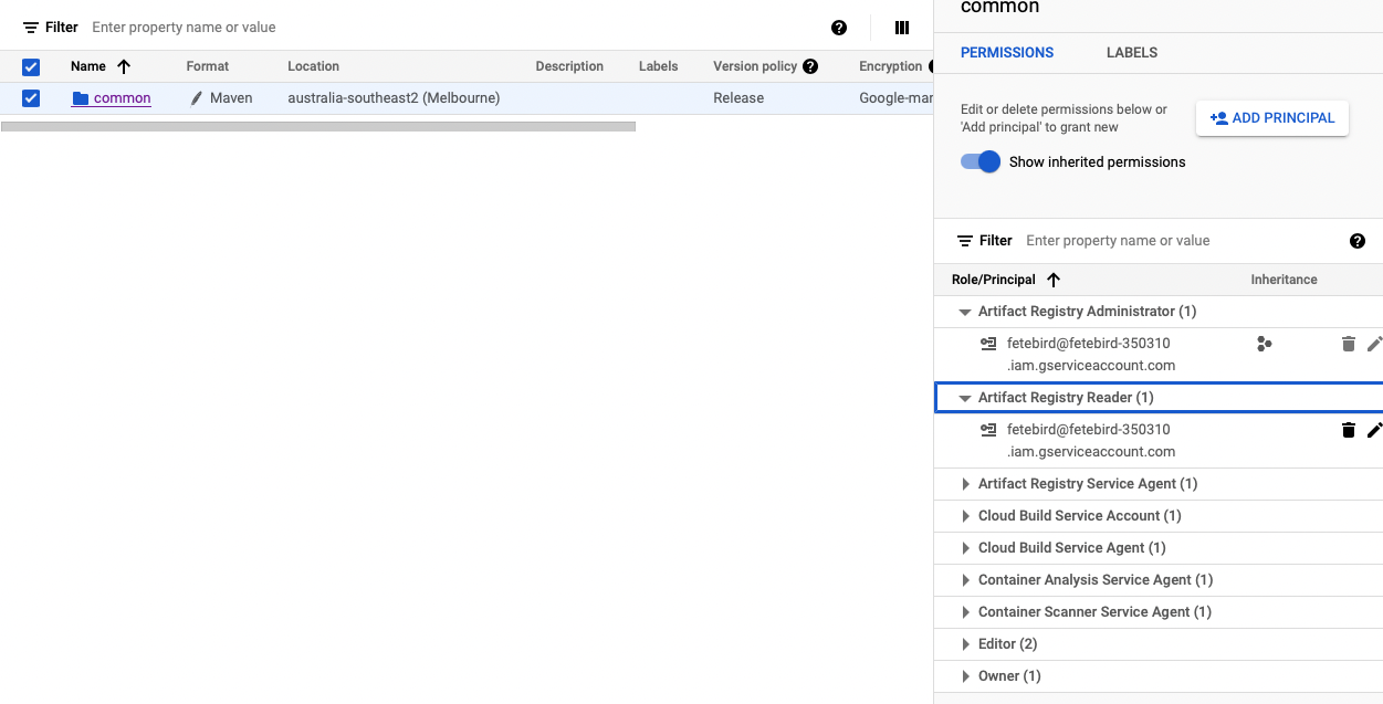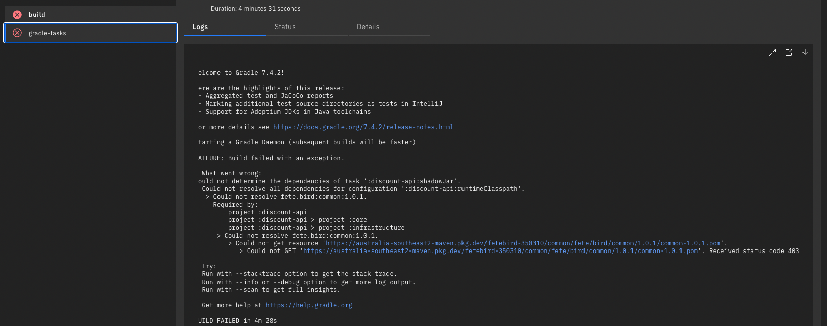 如果我提供对工件注册表的公共访问,它就能工作。不知怎么的,这个许可对我不起作用,不知道如何解决这个问题。