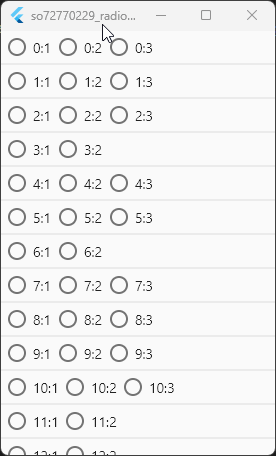 }只有一个缺点。在setState之后,整个屏幕会被刷新,并在第一个位置启动,当您更改在开始时屏幕外的一个无线电按钮的值时,这是很烦人的。