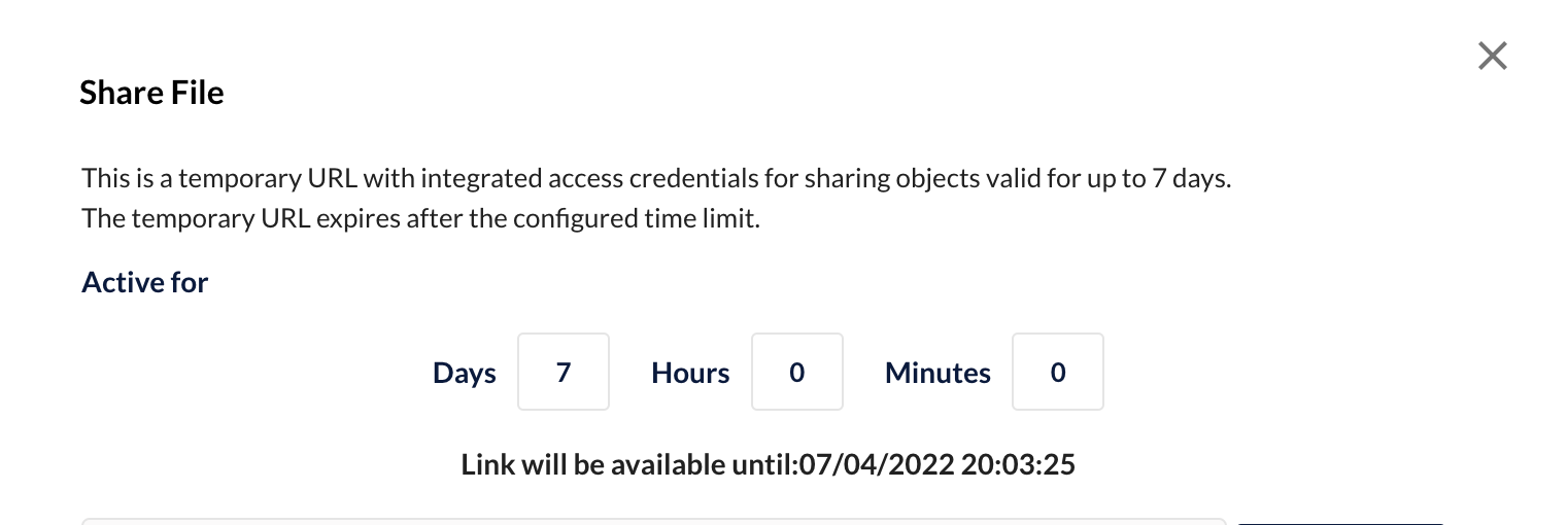 就像我们从minio UI中获得的链接一样,当我们单击特定文件的共享时,如下所示