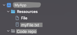 同时,在Finder中,Ressources目录不在MyApp目录中,而是在项目目录中的同一级别上。我想知道这是否可能是问题所在。