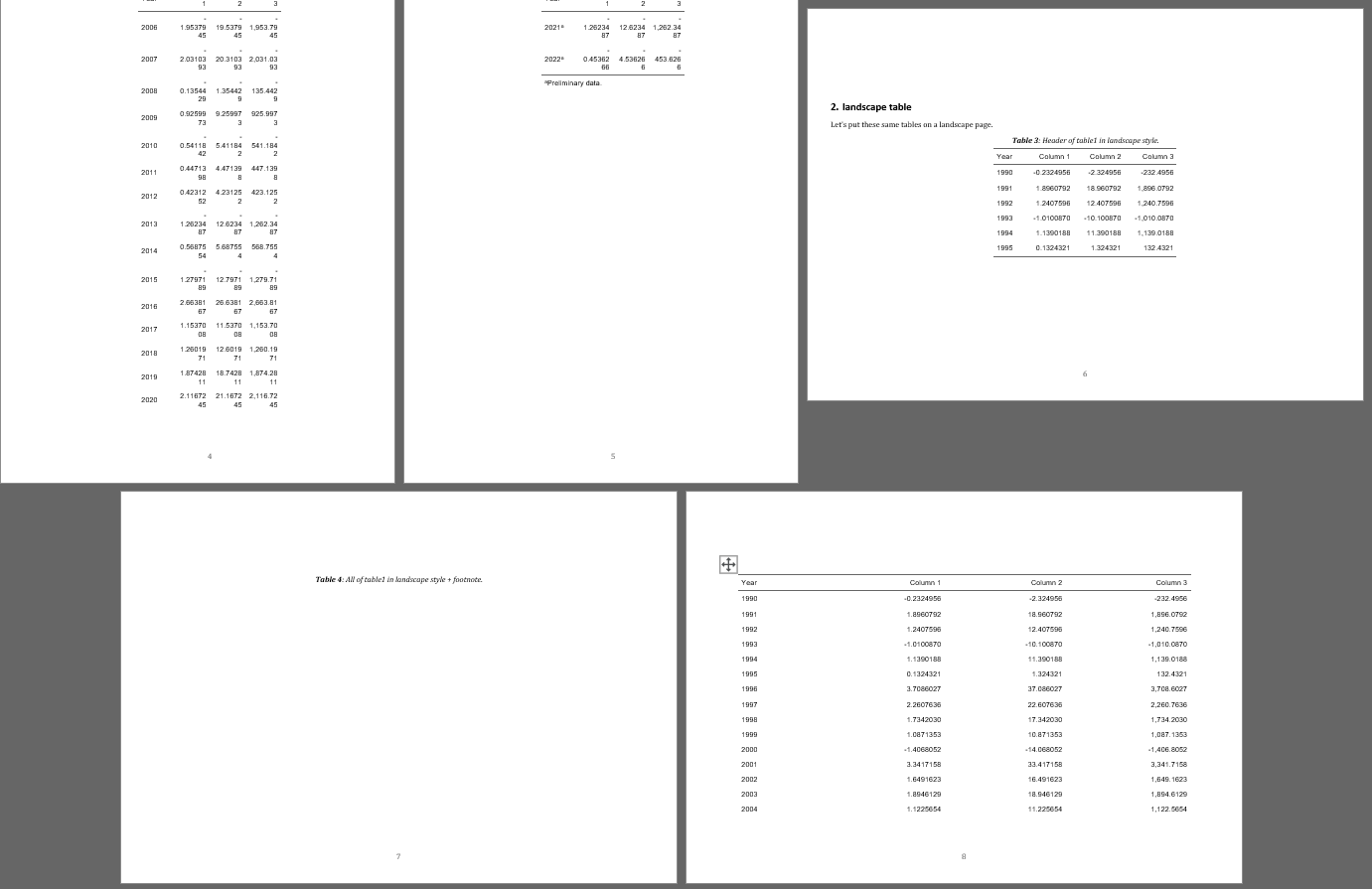 Let's put these same tables on a landscape page.