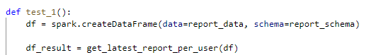 上面的片段来自我正在运行的单元测试笔记本,get_latest_report_per_user是在"dependency"笔记本中定义的。